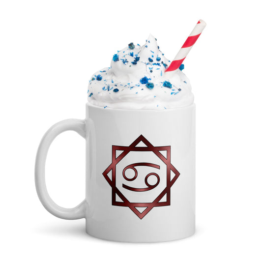 Metallic Zodiac Circle - Crimson Cancer - White glossy mug