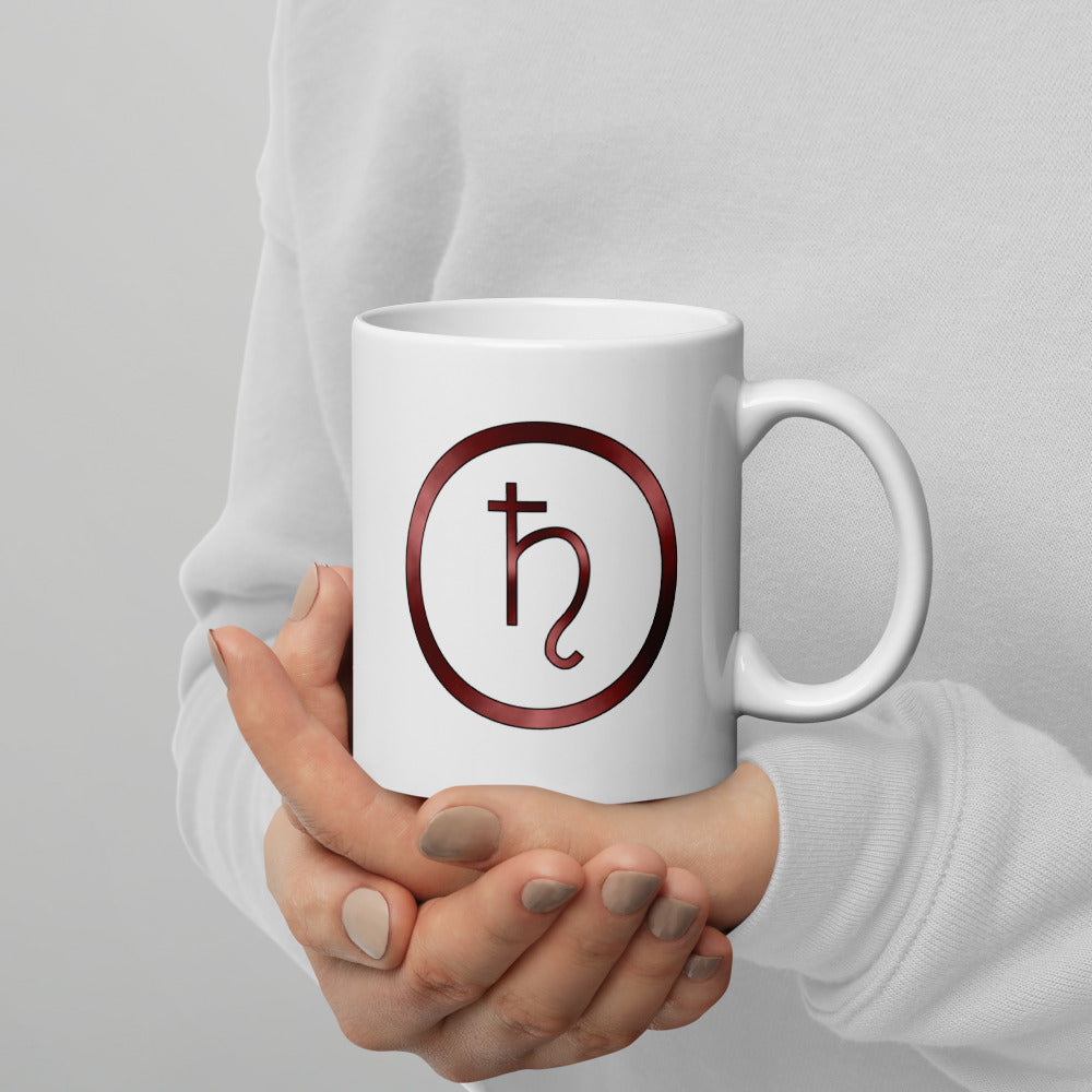 Metallic Zodiac Circle - Crimson Saturn - White glossy mug