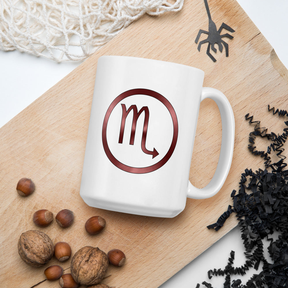 Metallic Zodiac Circle - Crimson Scorpio - White glossy mug