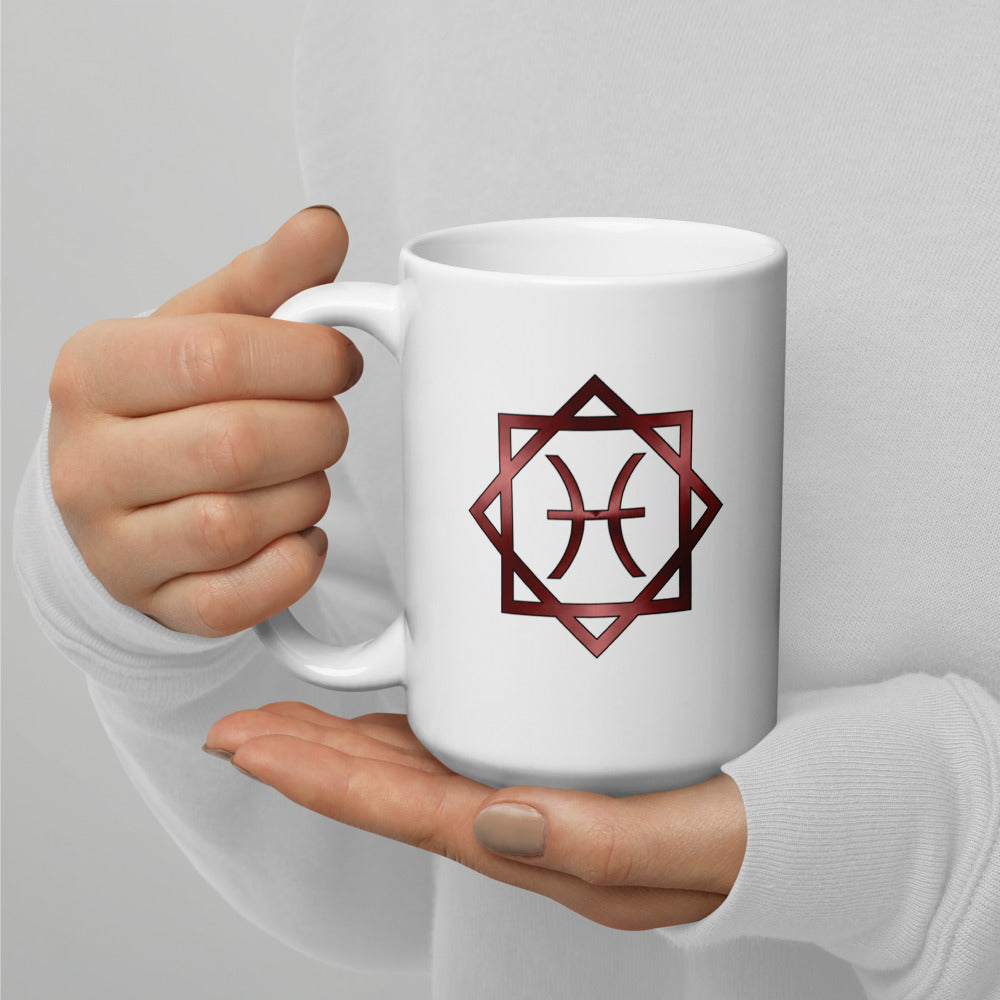 Metallic Zodiac Double-Box - Crimson Pisces - White glossy mug